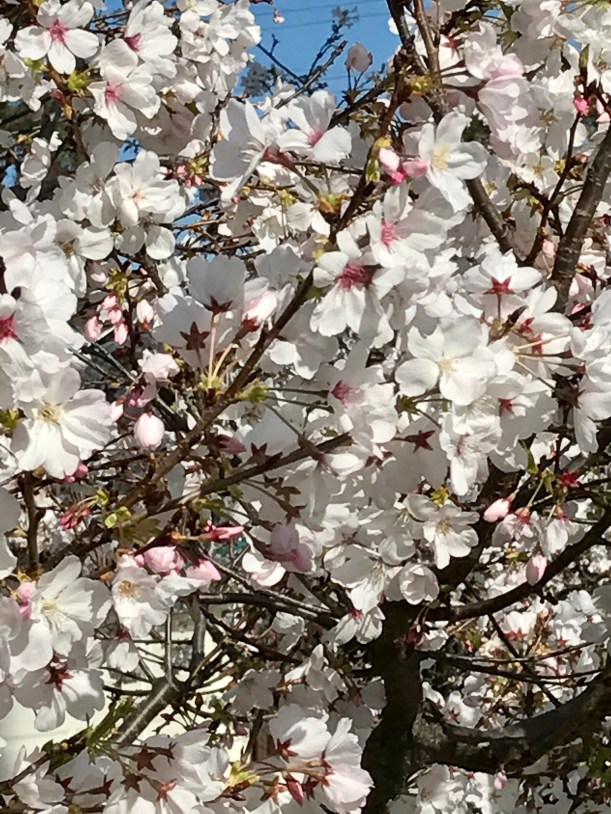 Blooming Cercis occidentalis. Google building behind hidden in today’s fog.