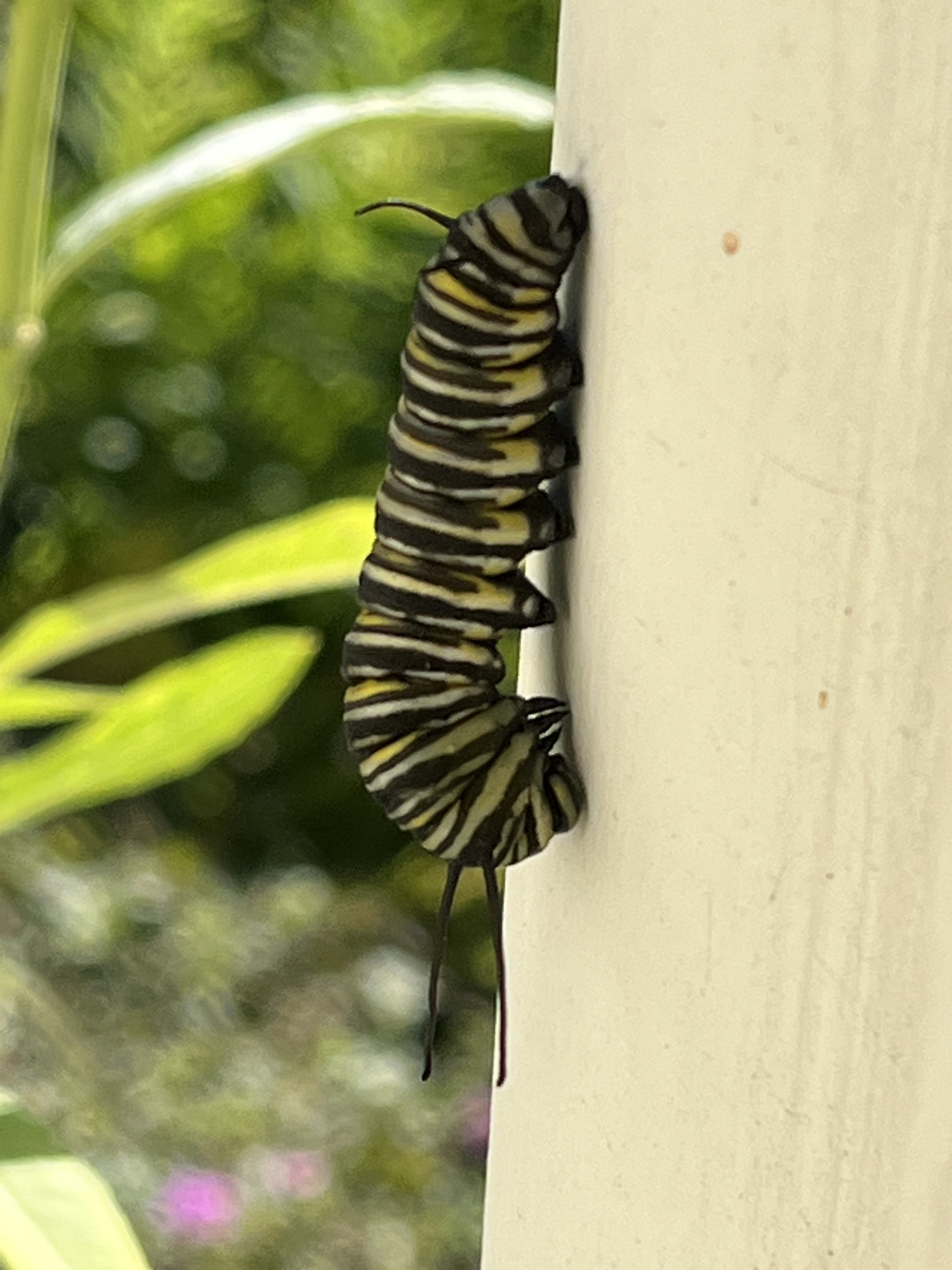 Monarch Butterfly Caterpillar – soon to form a chrysalis – 10:05 AM
