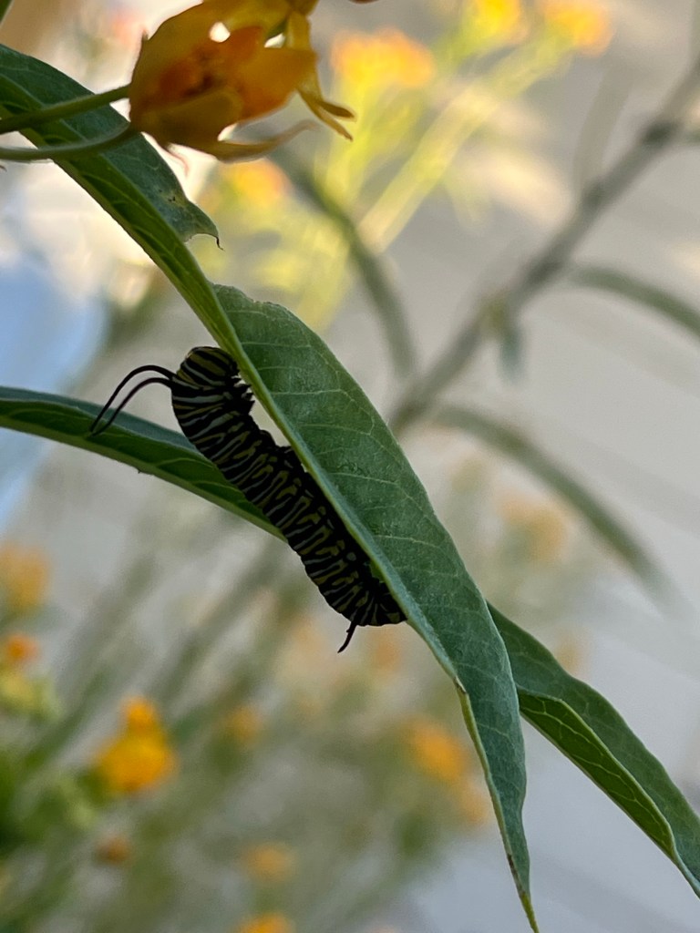 Monarch Butterfly Caterpillar – soon to form a chrysalis – 10:05 AM